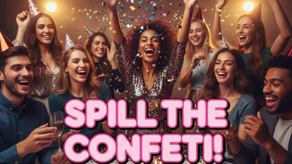 - The whole nine yards of birthday decorations, cake, balloons, and confetti everywhere