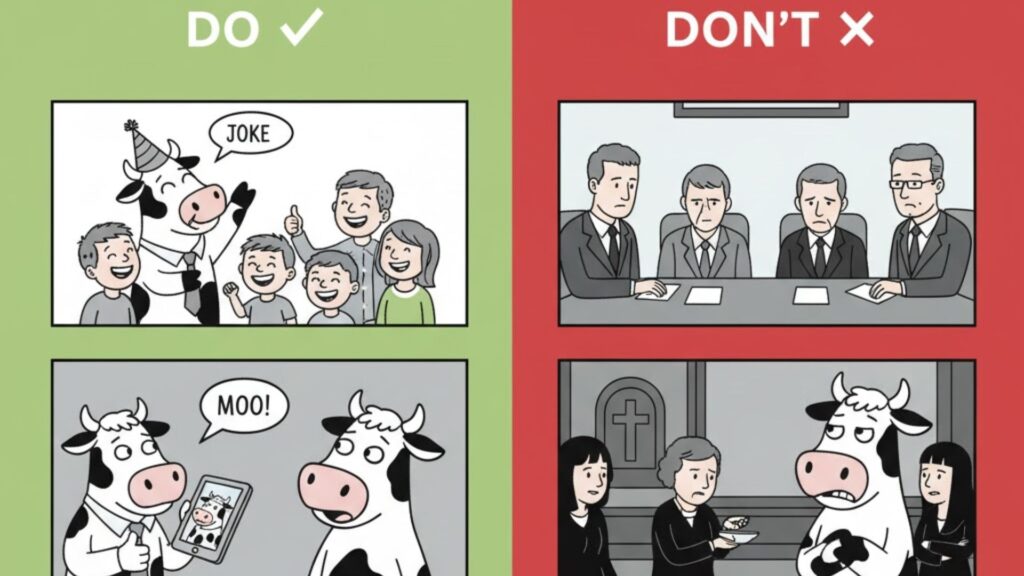 - Cow humor works everywhere—from family dinners to office Slack channels
