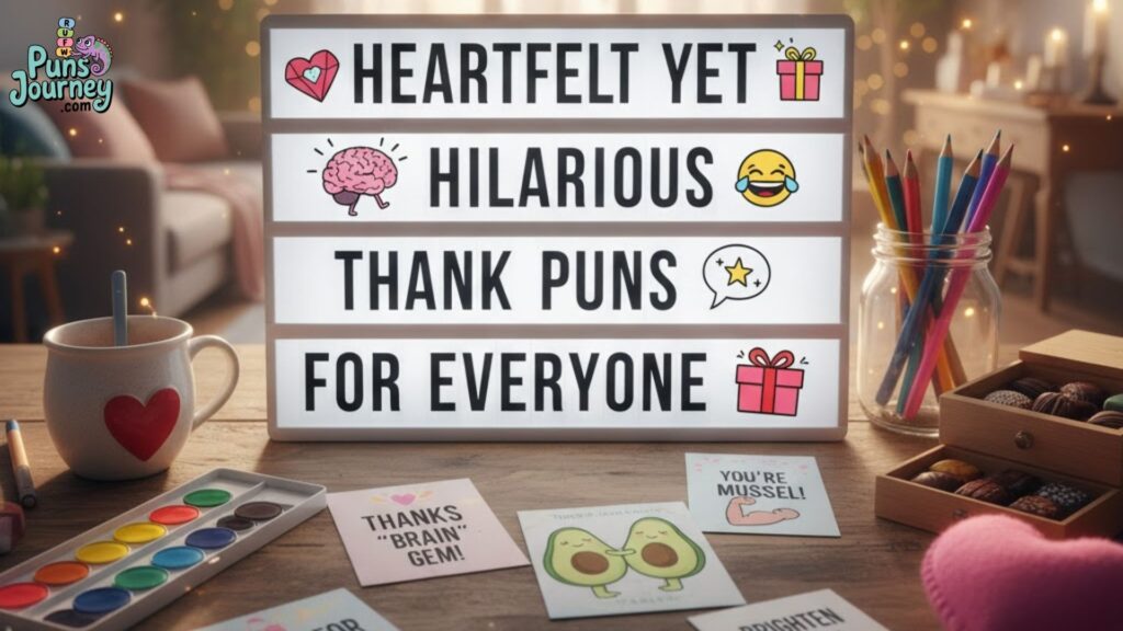 In this post, you’ll find hundreds of funny, clever, and heartwarming ways to say thanks with a twist. Whether you’re writing a card, a text, or a social media caption, these pun-filled expressions will help you show gratitude in the most memorable (and giggle-worthy) way possible.
